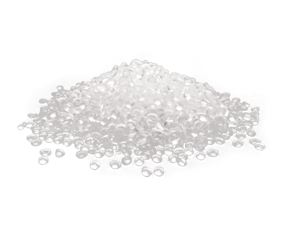 Utiliza-se o polietileno de baixa densidade (PEBD), que é um tipo de resina plástica derivada do petróleo, ele é fornecido em formato granulado como na imagem abaixo: